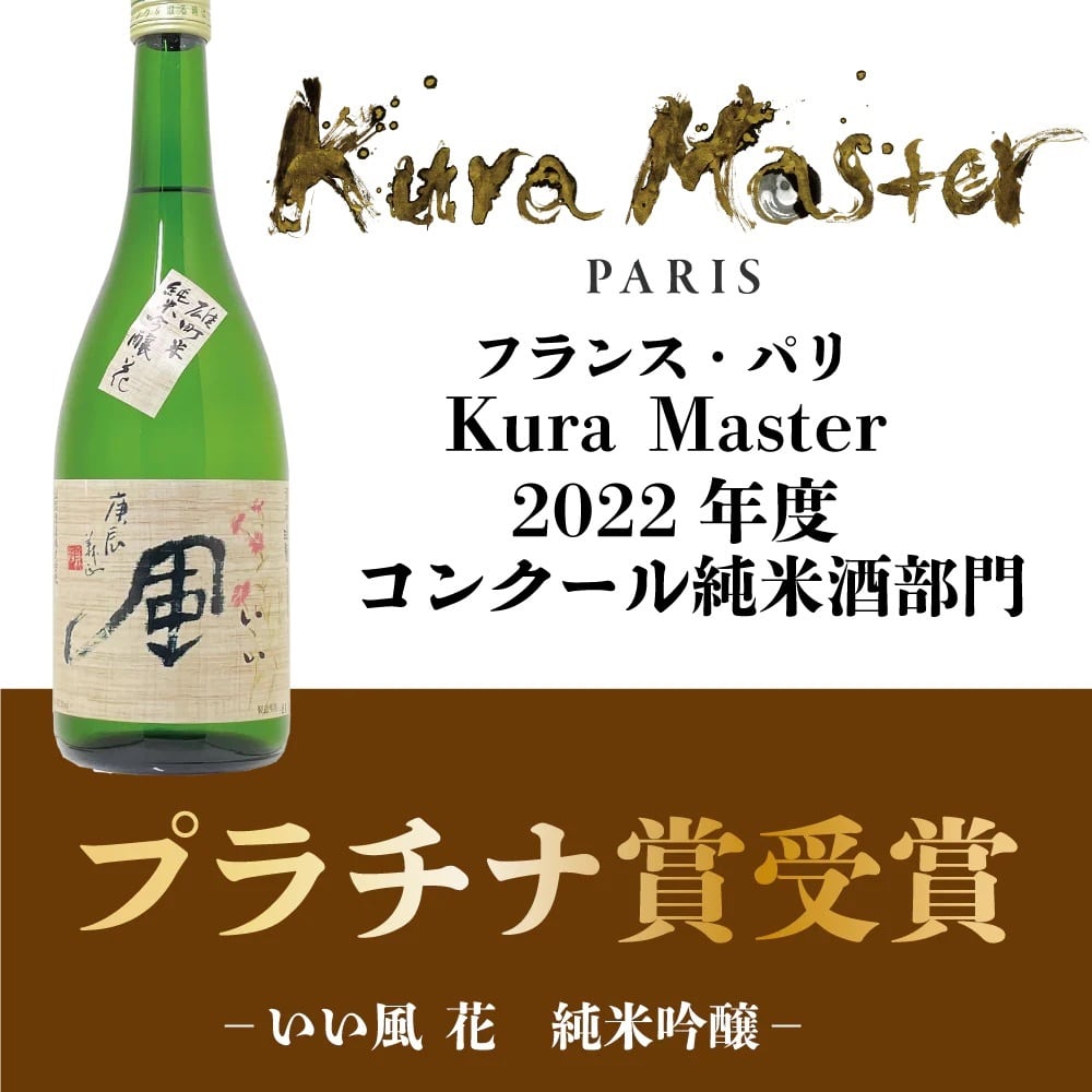 純米酒部門にて、本商品の「いい風 花 純米吟醸」が昨年に続きプラチナ賞を受賞しました!